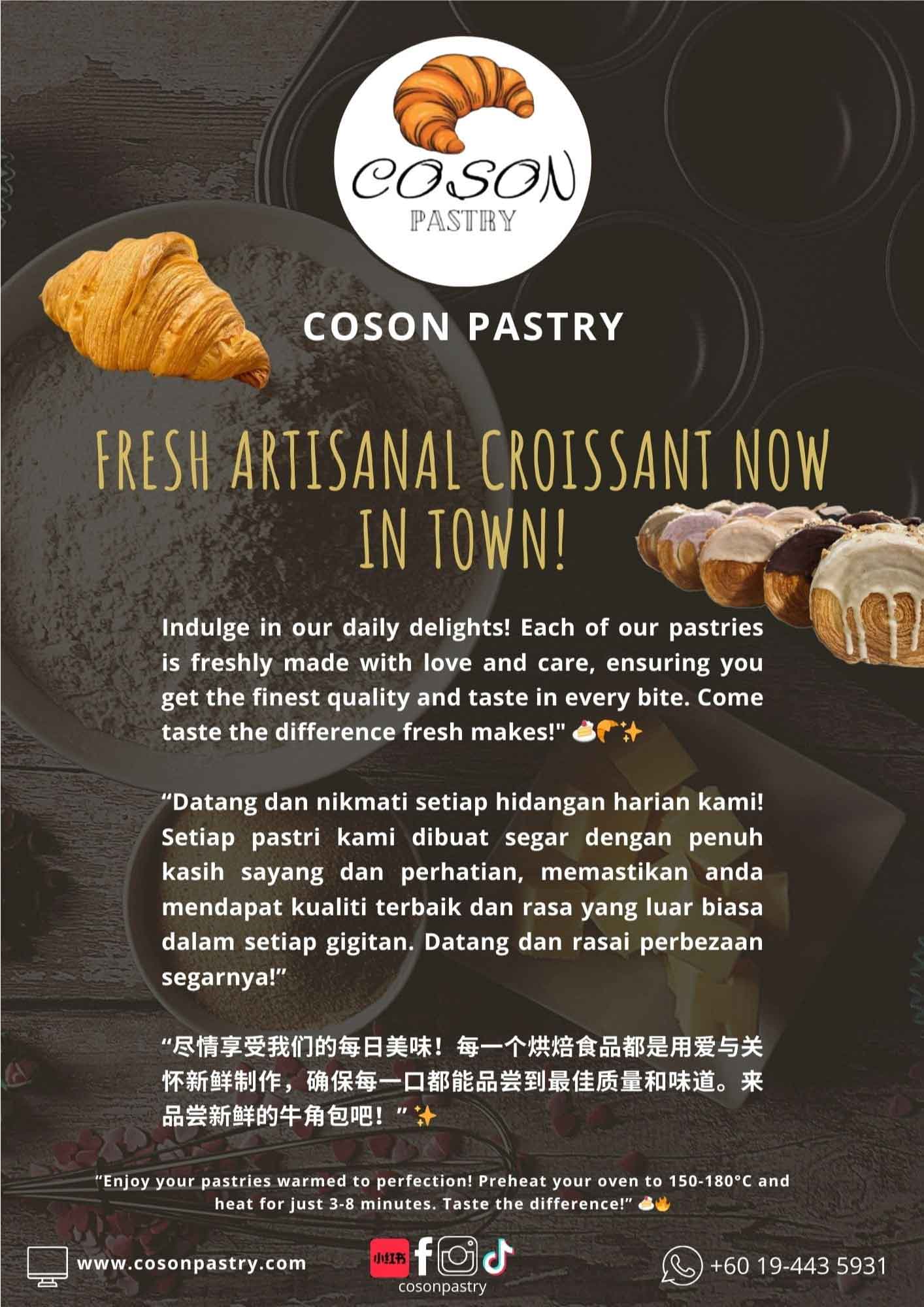 Our croissants are made with time-tested COSON recipes, ensuring an authentic and delectable taste experience.