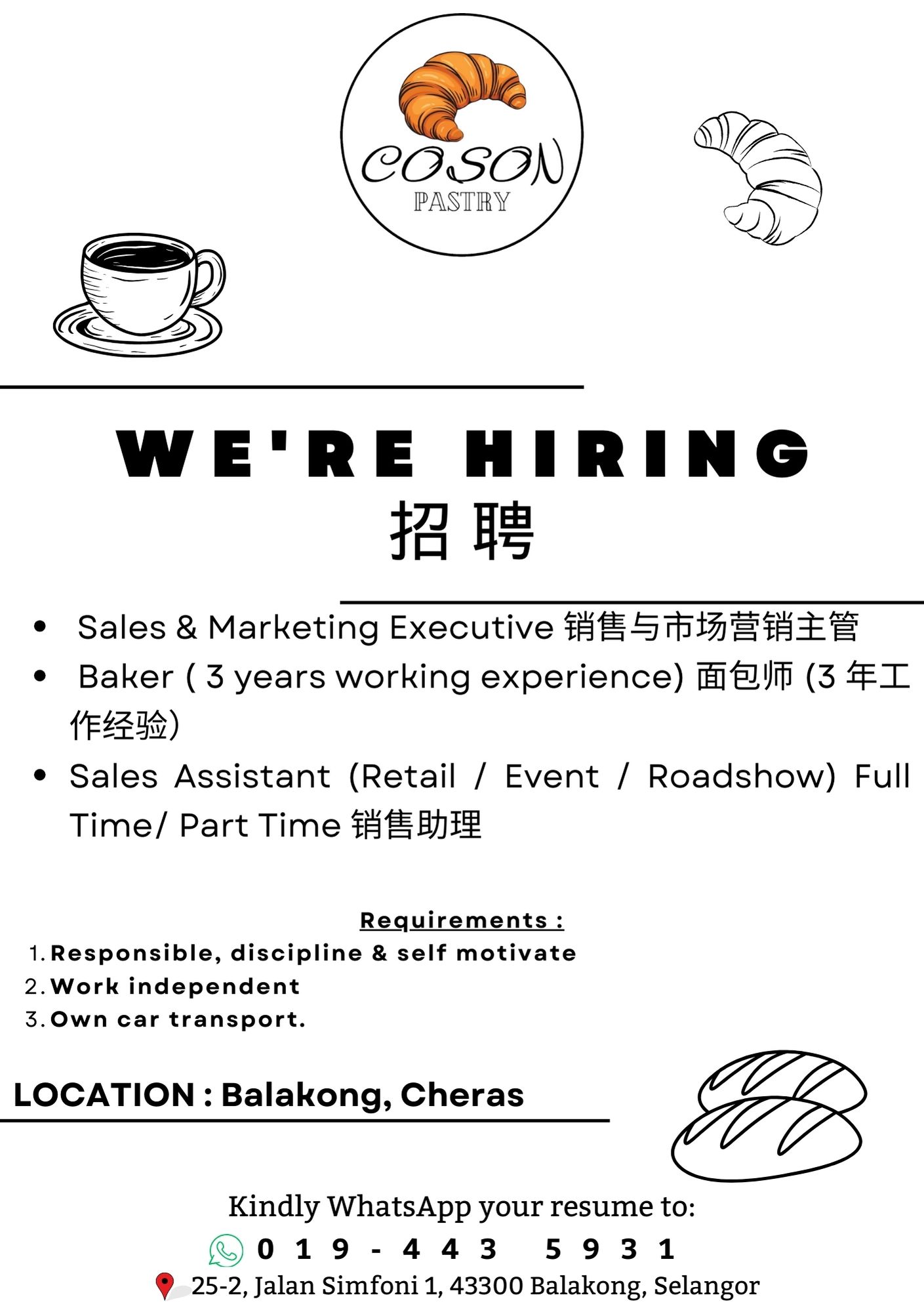 Interested applicants please WHATSAPP us your RESUME and arrange for interview