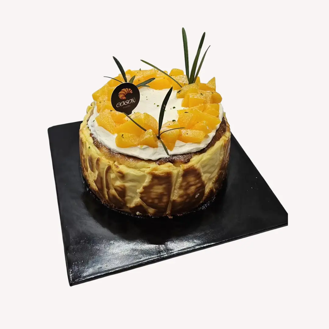 The 8″ Burnt Cheesecake. Basque delight, caramelized crust, creamy core; trendy, rustic dessert with unique, rich flavor.
